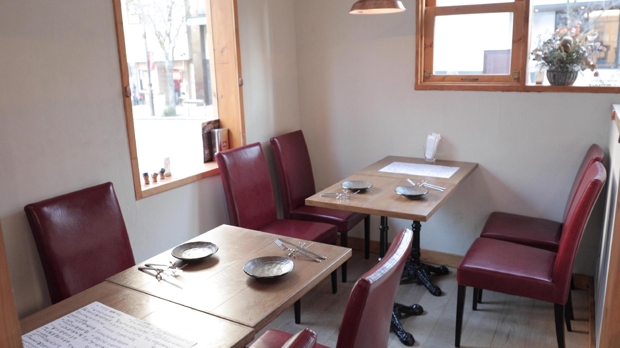 小上がりを上がりアンティークの扉を開けるとワンフロアー・オープンキッチンの店内